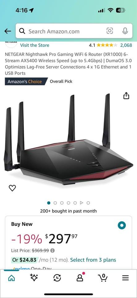 Netgear XR1000 Gaming Router. Runs Duma OS. Great for gaming and has WiFi6.